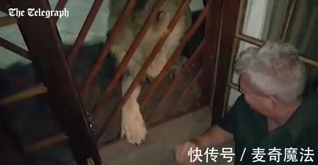 这只狮子三岁了。它的主人托比说,当地人总是喜欢攻击农民并试图把他们赶走。为了保护自己和家人,他不得不养狮子。